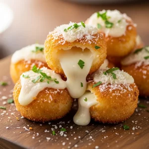 Golden, crispy cheese bites bursting with gooey mozzarella and Parmesan bliss.